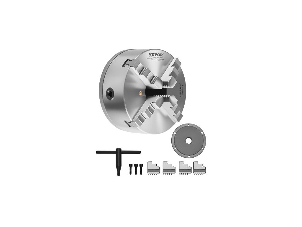 4čelisťové sklíčidlo pro soustruh VEVOR, 200 mm, samostředicí sklíčidlo se závitovou opěrnou deskou 1 1/2 palce-8, upínací rozsah 4–200 mm s T-klíčem, materiál HT300, pro soustruh na dřevo a kovStabilní a spolehlivý