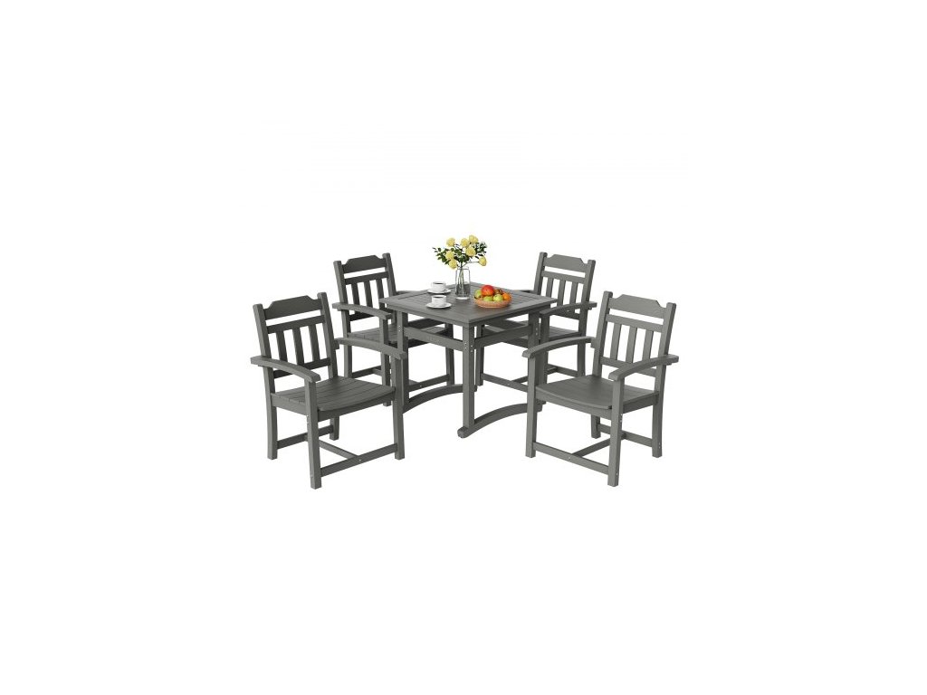 5dílná jídelní sada na terasu VEVOR, venkovní čtvercový stůl a židle, zahradní nábytek do každého počasí, malá sada na terasu HIPS, na trávník, terasu, dvůr, k bazénu, světle šedáKompletní 5dílná jídelní sada na terasu
