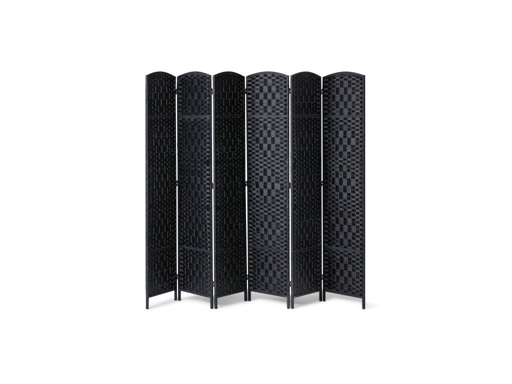 6panelová dělicí stěna VEVOR, ručně tkané skládací zástěny na ochranu soukromí s panty, přenosné a volně stojící dělicí stěny a nástěnná dělicí stěna pro oddělení místností, černáKlasický tkaný dělič pokojů
