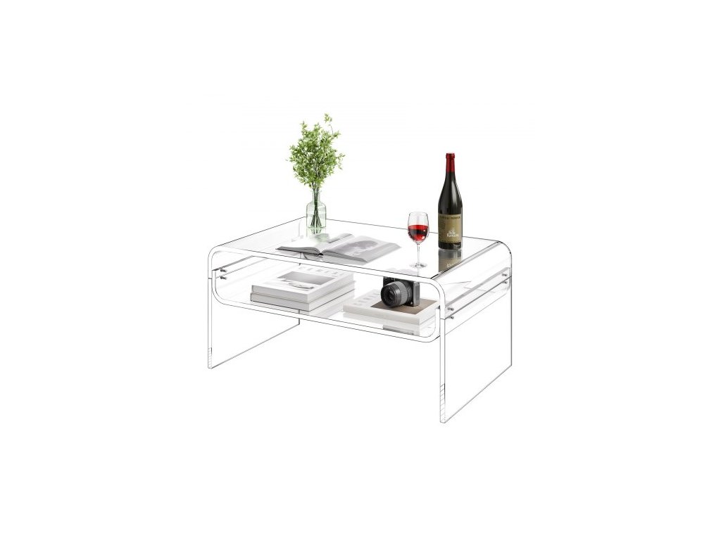 Akrylový konferenční stolek VEVOR, 2patrový středový stůl s úložnou policí, moderní obdélníkový akrylový konferenční stolek, ideální do jídelny, kuchyňského ostrůvku, restaurace, kanceláře, 50 x 80 x 38 cm (průhledný)Ztluštěná akrylová deska stolu