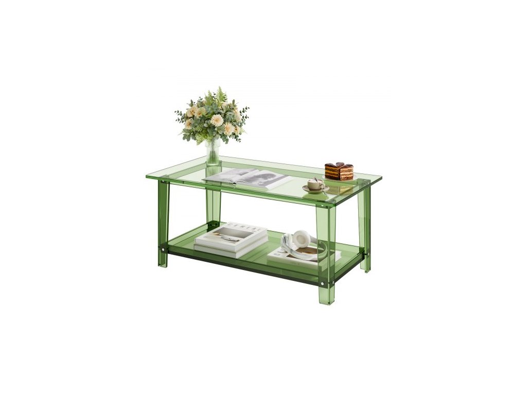 Akrylový konferenční stolek VEVOR, 2patrový středový stůl s úložnou policí, moderní obdélníkový akrylový konferenční stolek, ideální do jídelny, kuchyňského ostrůvku, restaurace, kanceláře, 50 x 80 x 40 cm (zelený)Ztluštěná akrylová deska stolu