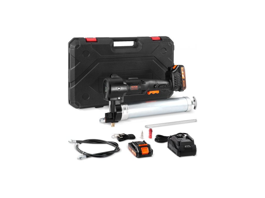 Akumulátorový mazací lis VEVOR, 20 V, 10 000 PSI, hadice dlouhá 93 cm, sada elektrického mazací pistole, profesionální vysokotlaký mazací lis na baterie s přepravním pouzdrem, baterií a nabíječkou, černáVylepšené mazání
