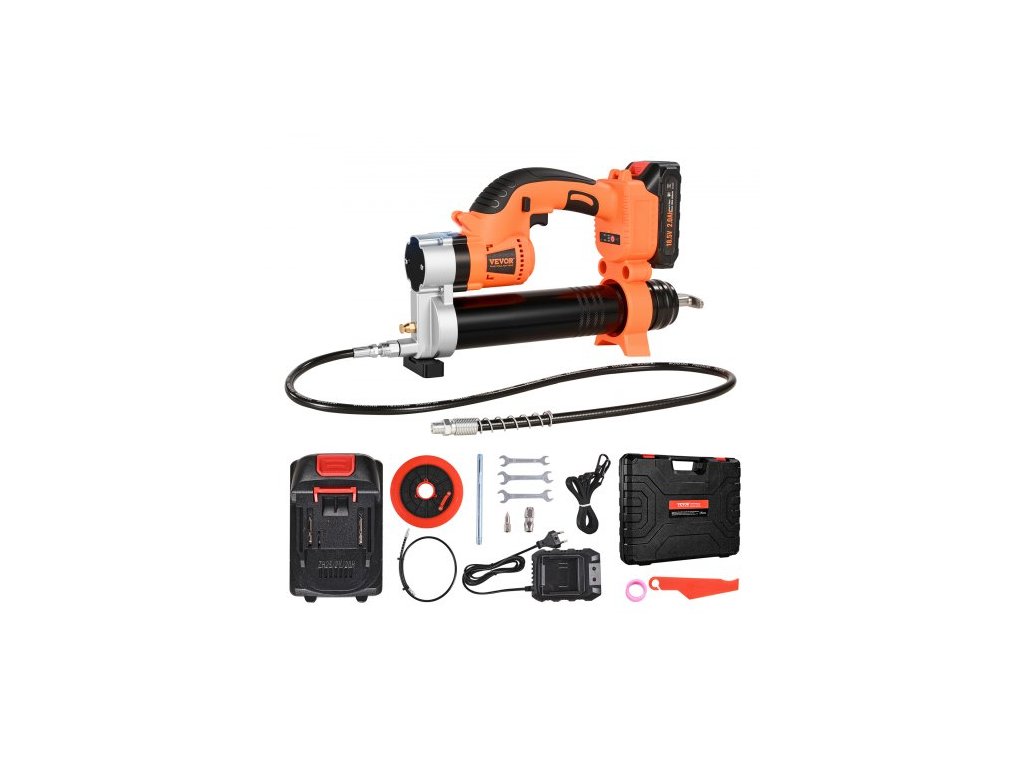 Akumulátorový mazací lis VEVOR, maximální tlak 8000 PSI, elektrický mazací lis 20 V s baterií 2,0 Ah a LED světlem, hadicí o délce 30 palců a přepravním pouzdrem, spouště s nastavitelnou rychlostí, mazání vozidel nebo strojůVysokorychlostní dávkování maziva