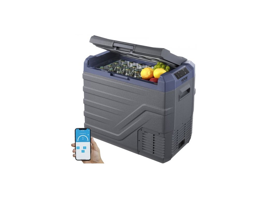 Autochladnička VEVOR, 12V autochladnička, 45L přenosná mraznička s jednou zónou a vestavěným osvětlením, -4℉-68℉, 12/24V DC a 100-240V AC kompresorová chladnička pro venkovní použití, kempování, obytné vozyPřenosná autochladnička