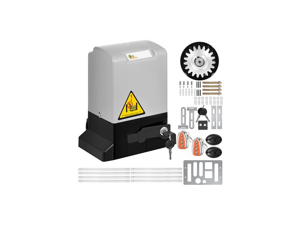 Automatický otvírač bran VEVOR 600 kg/1300 lb, s infračerveným bezpečnostním fotobuňkovým senzorem, 2 dálkovými ovladači, rychlost pohybu otvírače posuvné brány 1188,7 cm za minutu