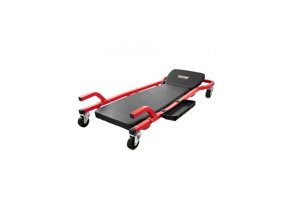Automobilový pojízdný pojízdný vůz VEVOR pro mechaniky, 1118 mm, nosnost 136,1 kg, 6 koleček, nastavitelná polstrovaná opěrka hlavy, odkládací plocha na nářadí, odolný ocelový rám pro garáže, opravny a kutily
