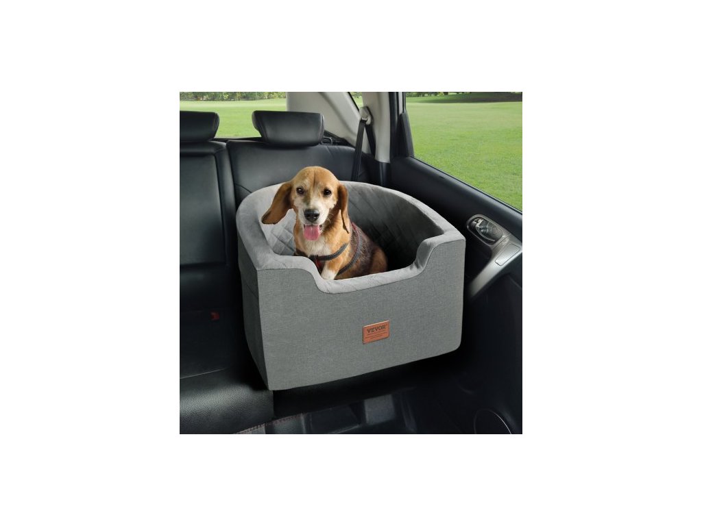 Autosedačka VEVOR pro psy, vodotěsná psí sedačka do auta s úložnou kapsou, bezpečnostním vodítkem s klipem a houbovou výplní, pelíšek do auta pro malé a střední psy do 23 kg, šedáAutosedačka pro domácí mazlíčky