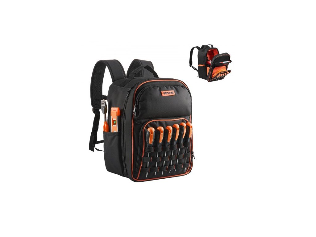 Batoh na nářadí VEVOR, 49 kapes, organizér na nářadí pro náročné pracovní účely s přihrádkou na notebook a zesílenou látkovou základnou, batoh na staveništi pro elektrikáře, opravářeIdeální pracovní společník na cesty