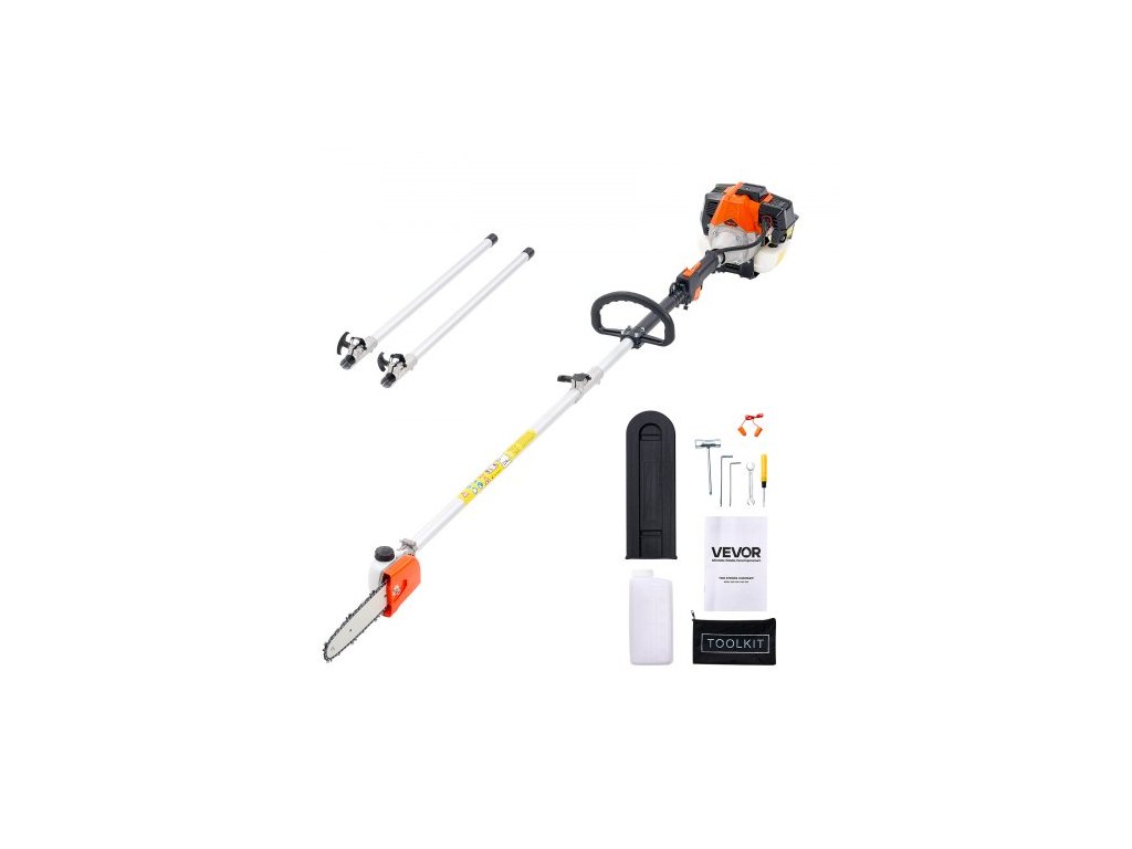 Benzínová tyčová pila VEVOR, benzínové tyčové pily o objemu 33 ccm, dvoutaktní, s řeznou lištou 20,3 cm, akumulátorový vyžínač stromů s palivovou nádrží o objemu 850 ml, výsuvná 2 až 3,5 m, výkonná řetězová pila pro zastřihování a prořezávání stromůBez námahy se vypořádejte s vysokými větvemi