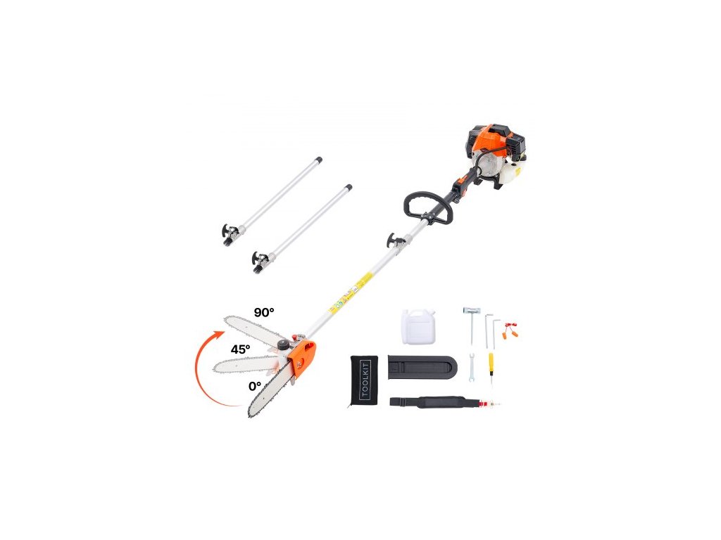 Benzínová tyčová pila VEVOR, benzínové tyčové pily o objemu 43 ccm, dvoutaktní, s řeznou lištou 25,4 cm, akumulátorový vyžínač stromů s otočnou hlavou, výsuvná 2,1 až 3,6 m, výkonná řetězová pila pro prořezávání stromů