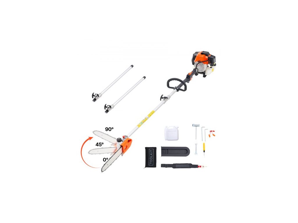 Benzínová vytahovací pila VEVOR, benzínové vytahovací pily o objemu 43 ccm, dvoutaktní, s řeznou lištou 30,48 cm, akumulátorový vyžínač stromů s otočnou hlavou, výsuvná 2,16 až 3,66 m, výkonná řetězová pila pro prořezávání stromů