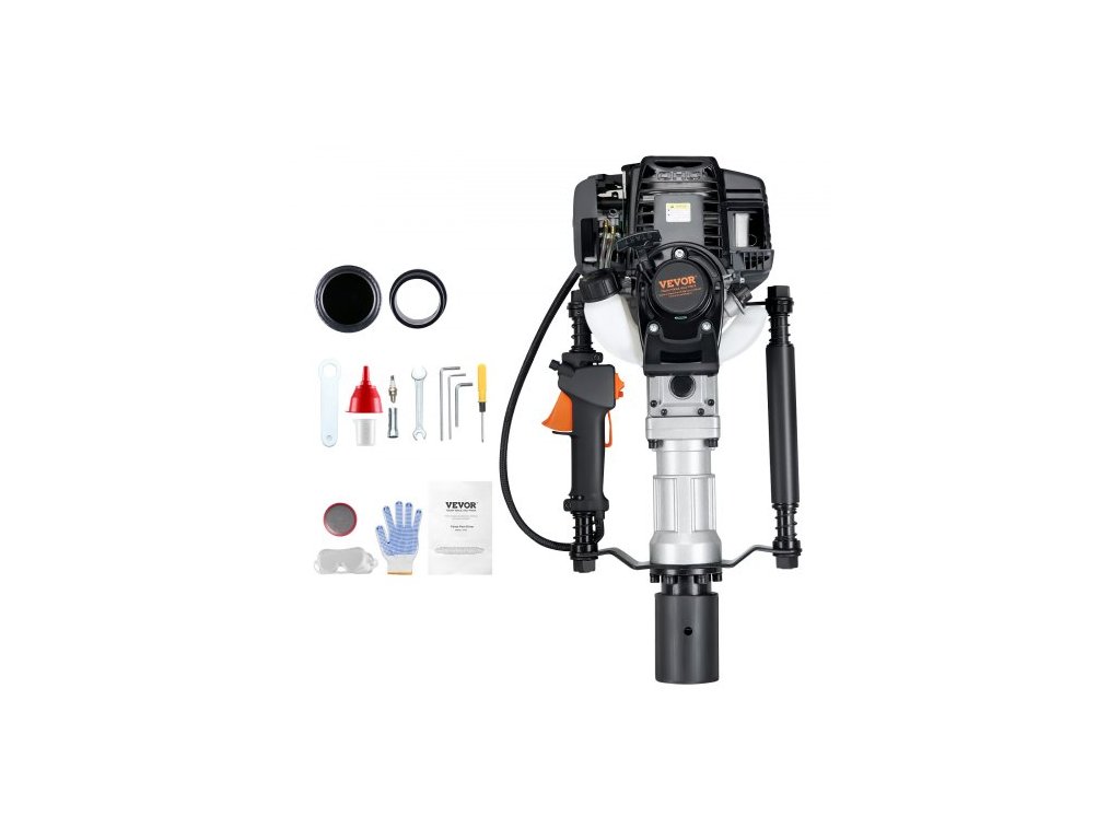 Benzínový zatloukač T-sloupků VEVOR 37,77 ccm, čtyřtaktní benzínový motor, zatloukač plotů s 2 sloupky (55/70 mm), přenosný zatloukač 1000 W pro farmy, oplocení rančů a vylepšení silnic.