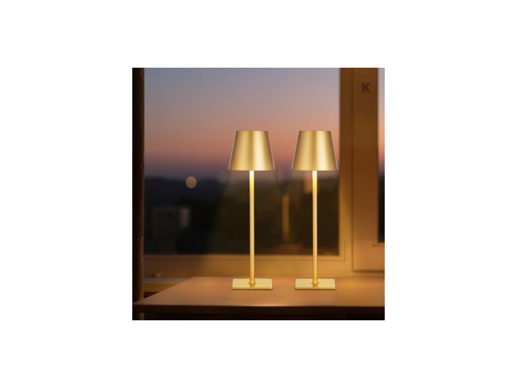Bezdrátová stolní lampa VEVOR, balení 2 ks, stolní lampa s vestavěnou dobíjecí baterií 5200 mAh, plynulé stmívání ve 3 barvách, teplota barev 3000–6500 K, stolní světlo do restaurace, ložnice, venkovní použití, zlatáStabilní struktura