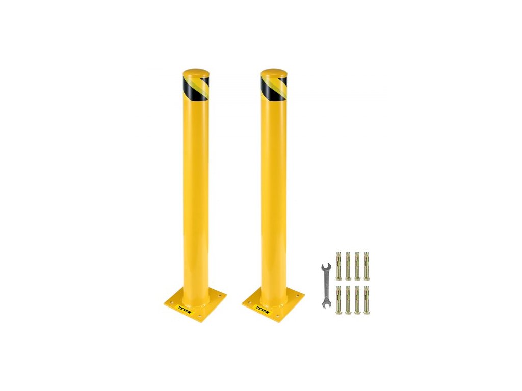 Bezpečnostní sloupek VEVOR, sloupek o výšce 48 palců, bezpečnostní sloupek z ocelové trubky o průměru 5,5 palce, žlutý ocelový sloupek, ocelový bezpečnostní sloupek s 8 kotevními šrouby, ideální pro oblasti citlivé na dopravuZabezpečený majetek