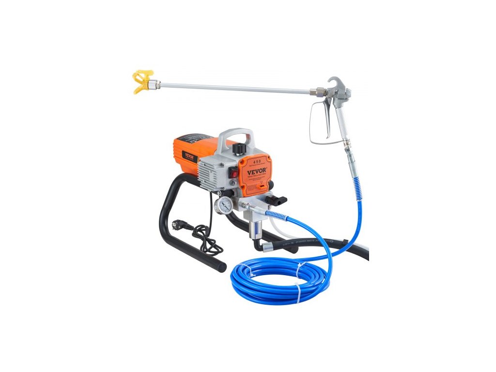 Bezvzduchový stříkací pistole VEVOR Pro, sada elektrické stříkací pistole 1800 W, nastavitelný tlak stříkání s trubkou pro barvy na stěny a stropy/dřevo a kovBezvzduchové stříkací zařízení s vysokým výkonem