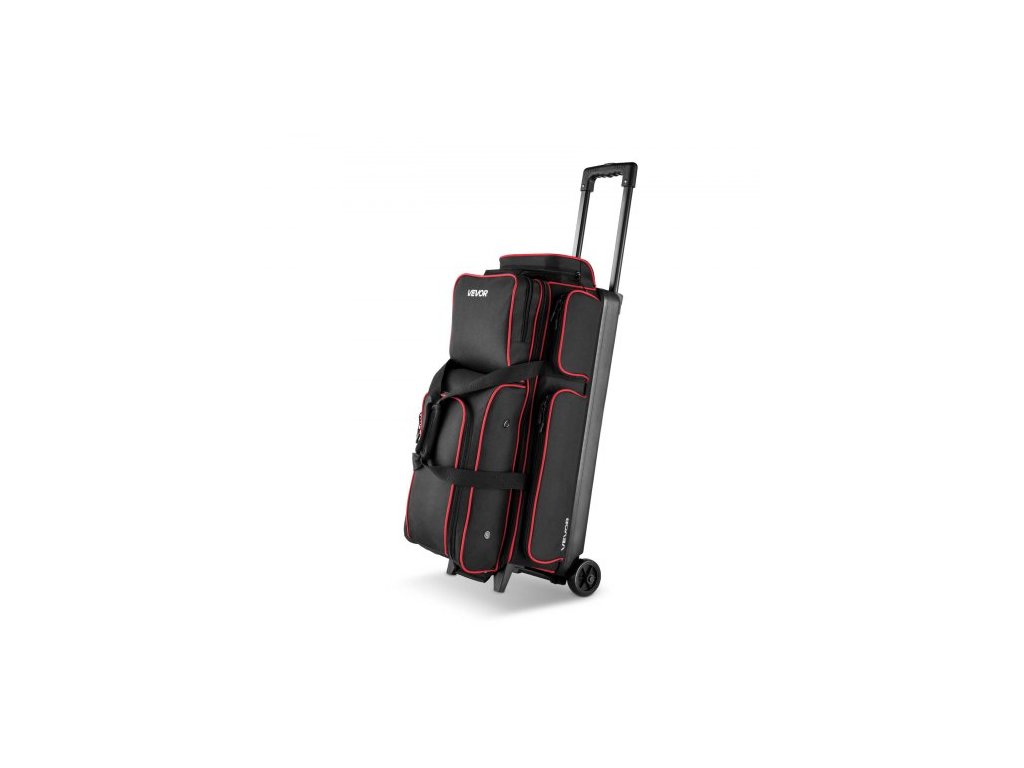 Bowlingová taška na koule VEVOR, bowlingová taška na 3 koule s kolečky a dvojitým válečkem, se samostatnou přihrádkou na boty (až do velikosti US 16) a velkou kapsou na příslušenství, zatahovací rukojeť s délkou až 1050 mmProfesionální design bowlingového pytle