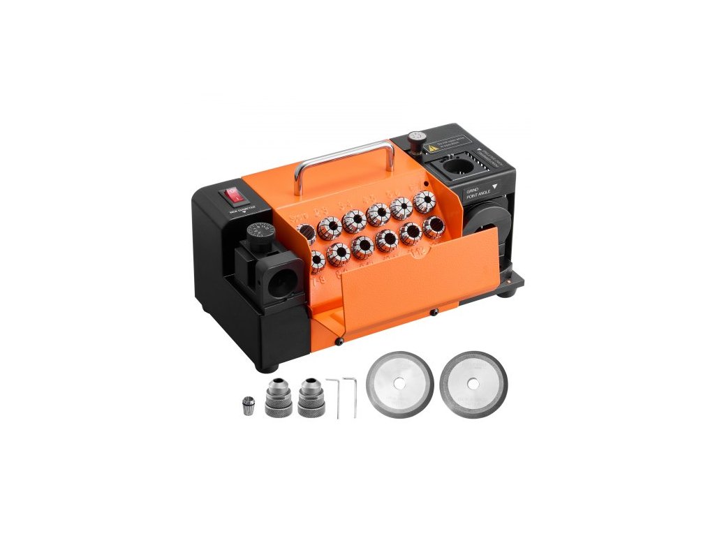 Brousek na vrtáky VEVOR MR-13B, ostřič na vrtáky 3–15 mm s nastavitelným úhlem odsazení břitu a úhlem špičky 95°–135°, vysokorychlostní ostřič 4600 ot./min s 13 kleštinami, kotouči CBN a SDC