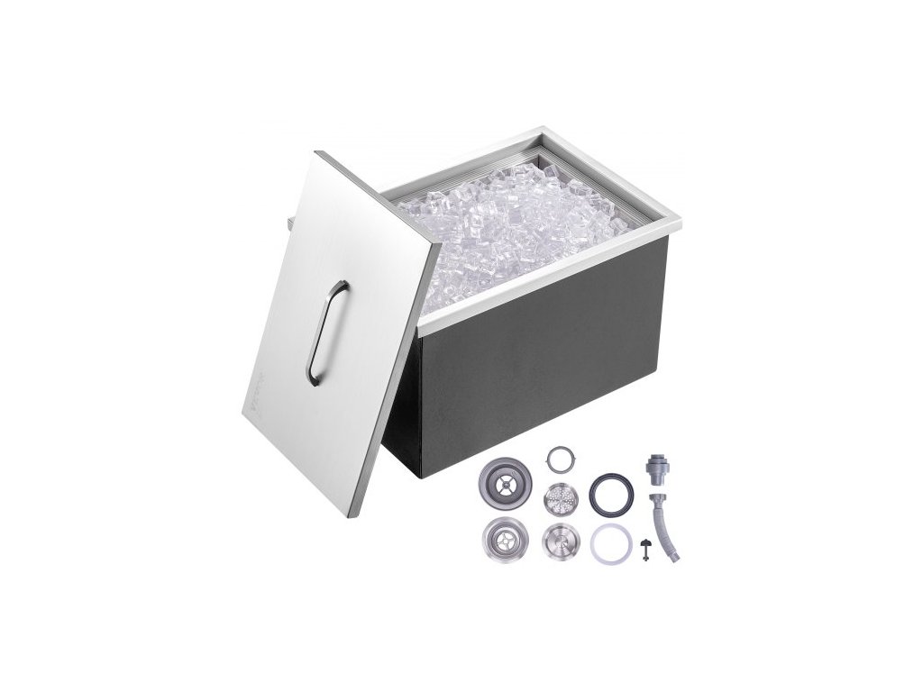 Chladič ledu VEVOR, nerezová ocel, 22"D x 17"Š x 12"V, komerční nádoba na led s krytem, venkovní kuchyňský ledový bar o objemu 40 qt, odtoková trubka a vypouštěcí zátka součástí balení, na studené víno a pivo