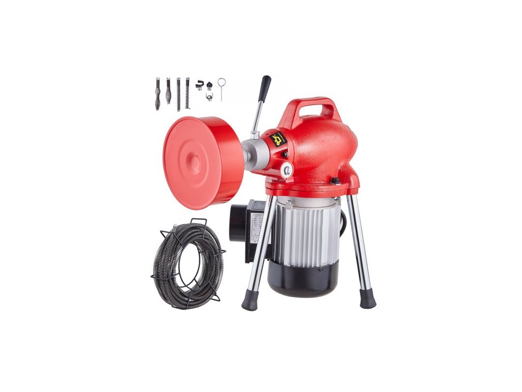 Čistič odpadů VEVOR, elektrický šnekový dopravník do kanalizace, 66 stop x 5/8 palce, 250 W, ruční podávání - se 2 ocelovými sekčními lany (66' x 5/8" a 15' x 3/8"), 7 řeznými nástroji a ovládáním ve směru/proti směru hodinových ručiček pro potrubí…