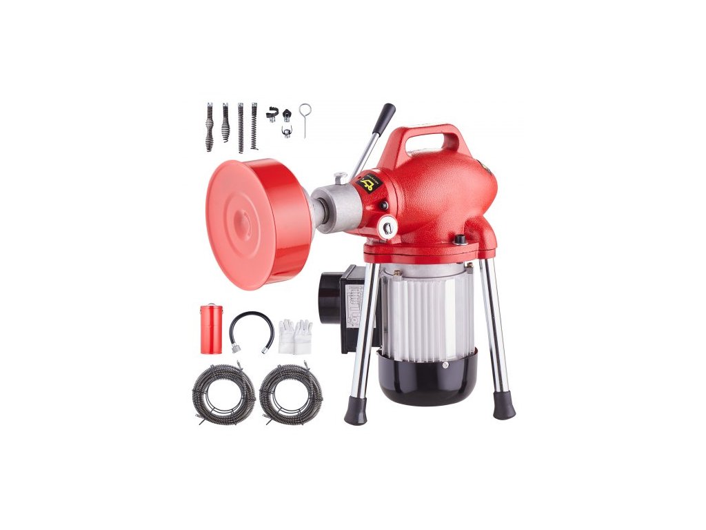 Čistič odpadů VEVOR, elektrický šnekový dopravník o výkonu 370 W, 36 metrů x 1,6 cm, ruční podávání - se 2 ocelovými lany (31,7 m x 1,6 m a 6,1 m x 1,3 m), 7 řeznými nástroji a ovládáním ve směru/proti směru hodinových ručiček pro potrubí o průměru 4,2 až 10 cmRobustní motor
