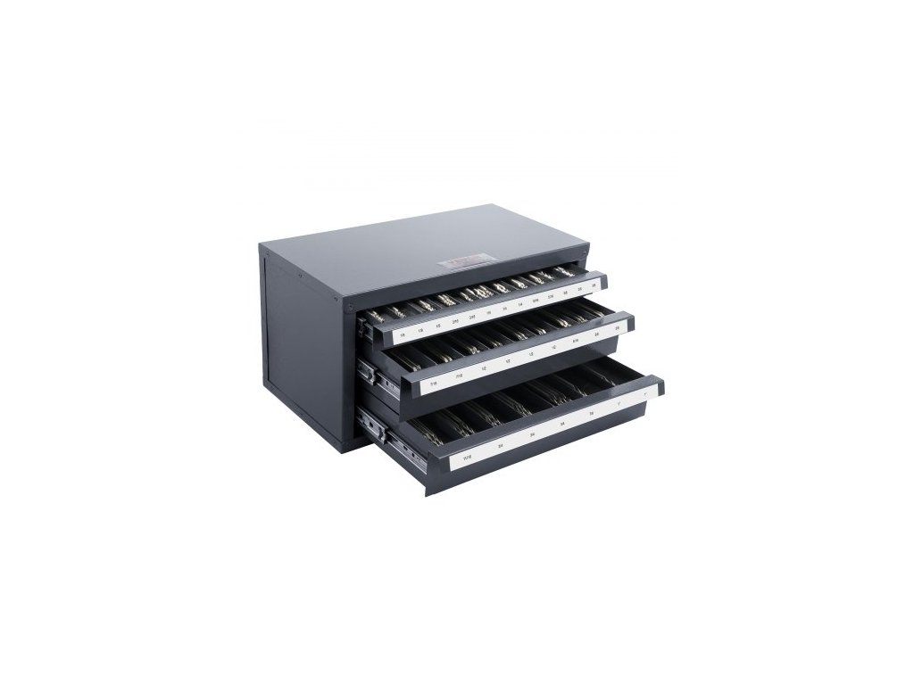 Dávkovací skříňka na frézy VEVOR, třízásuvková organizérová skříňka na frézy pro ocelové frézy od 1/8" do 1", se štítky, 29 přihrádek, stohovatelná pro skladování fréz