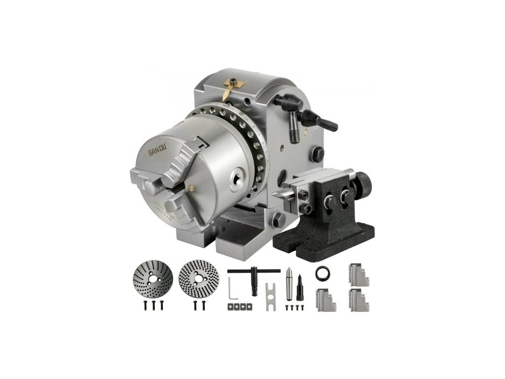 Dělicí hlava VEVOR 4palcová indexovací frézovací hlava 100MM polouniverzální dělící hlava 4palcové 3čelisťové sklíčidlo Sada dělících hlav s indexovacími deskami a koníkem pro přesný otočný stůlNastavitelný úhel