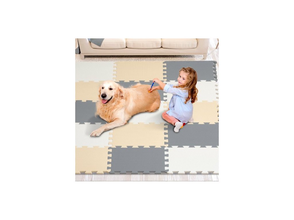 Dětská hrací podložka VEVOR s 16 dlaždicemi, 0,4 palce pro batolata s EVA pěnou, 12" x 12" hrací podložka s puzzle o rozloze 16 čtverečních stop, propojené batolata do herny, dětského pokoje, obývacího pokoje, velbloudí, šedá a béžováTlumení nárazů a odskok