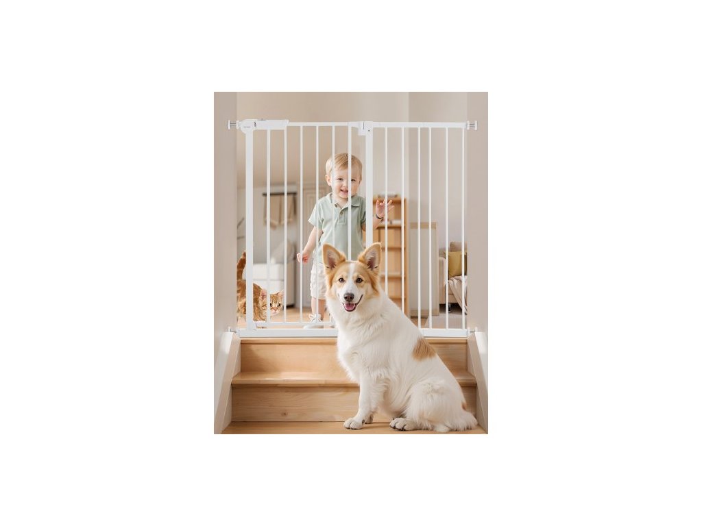 Dětská zábrana VEVOR, nastavitelná šířka 26-40 palců, výška psí branky 36 palců, snadný průchod, pro zabezpečení dětí a domácích mazlíčků, sada pro montáž pod tlakem, nástěnné misky, otevírání jednou rukou, pro schody a dveře, bíláZvýšená výška konstrukce