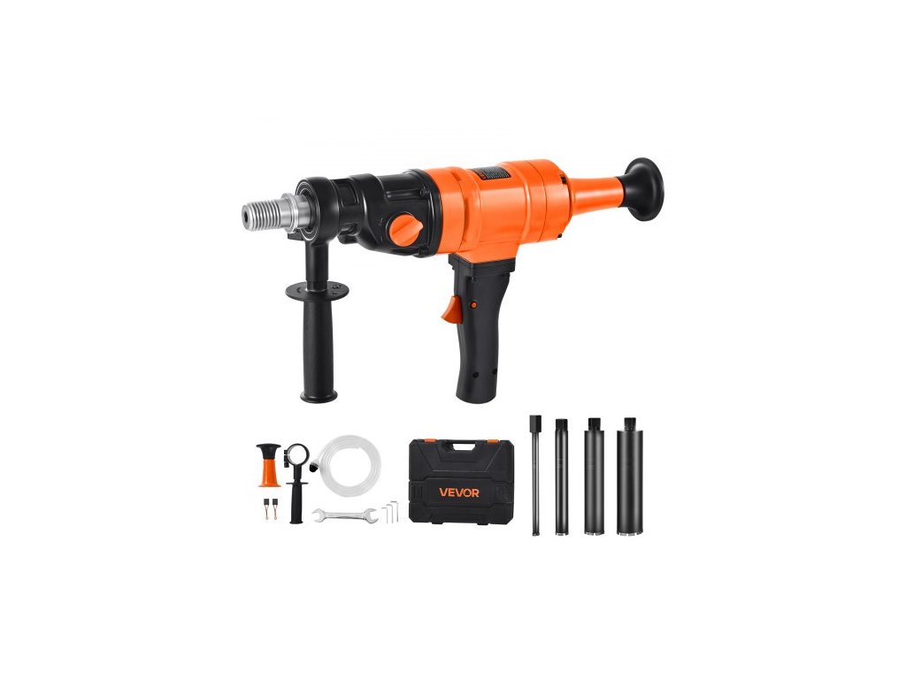 Diamantová jádrová vrtačka VEVOR, průměr vrtání 200 mm, ruční suchá i mokrá jádrová vrtačka do betonu se 4 vrtáky, 1000/2250 ot./min., 2 rychlosti, závit UNC1 1/4-7, pro beton, cihly, kámen, 1500 W