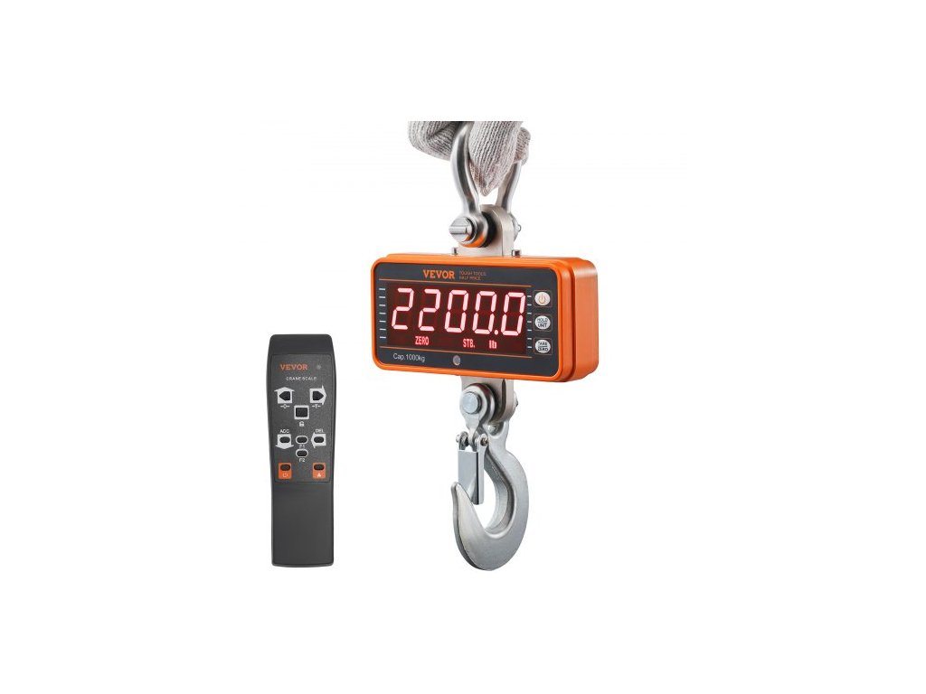 Digitální jeřábová váha VEVOR, 2200 lbs/1000 kg, průmyslová závěsná váha pro těžké zatížení s dálkovým ovládáním, pouzdro z litého hliníku a LED displej, vysoká přesnost pro stavebnictví, továrny, farmy, lov (oranžová)Správné vážení