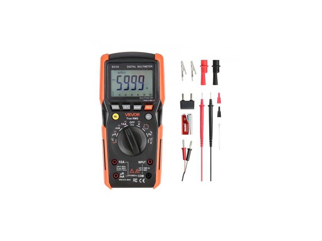 Digitální multimetr VEVOR, 6000bodový TRMS DC/AC voltmetr, tester proudu, automatický multimetr pro měření proudu, napětí, odporu, kapacity, teploty, diod, kontinuity a nízké impedance