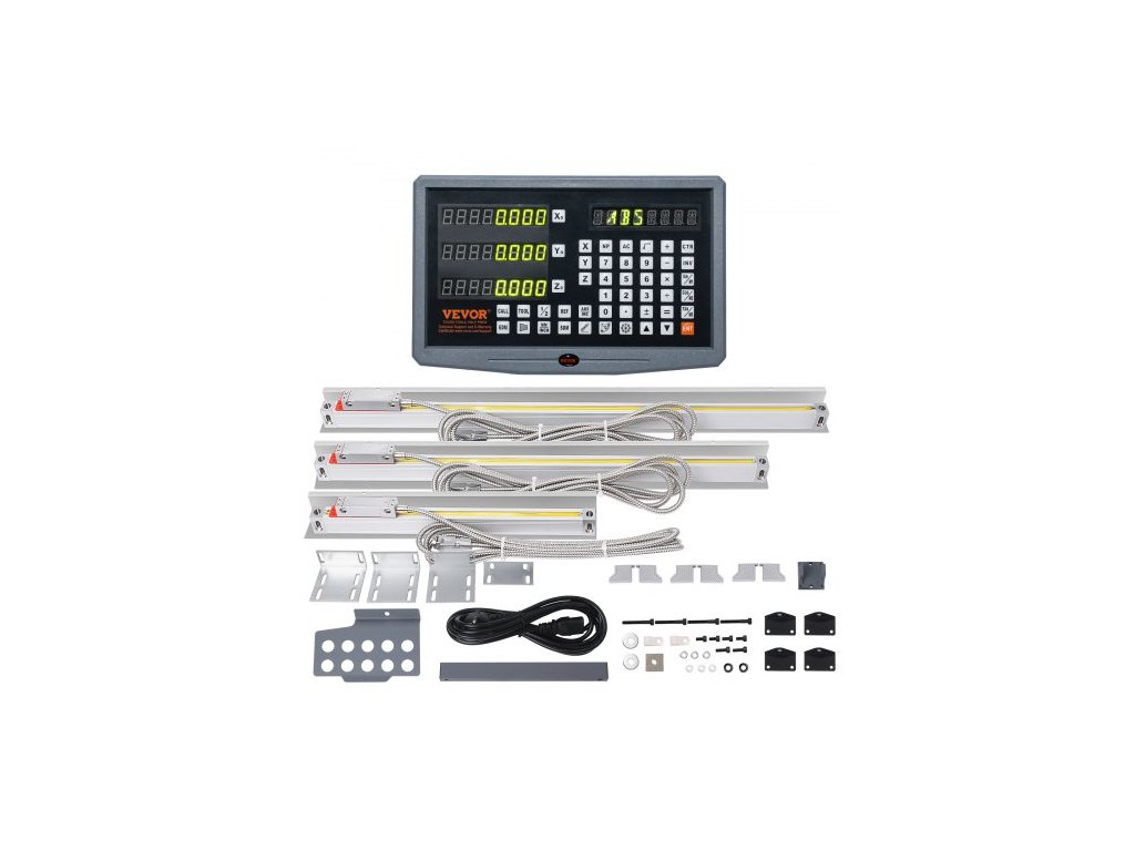Digitální odečet VEVOR 250 & 500 & 600 mm, lineární stupnice, 3osá zobrazovací sada DRO, podpěrný kolík, držák nože, deska, pouzdro, hodiny, držák napájecího kabelu, hodiny, mince, motýlek, kryt, pravítkoPřesné 3D obrábění a měření