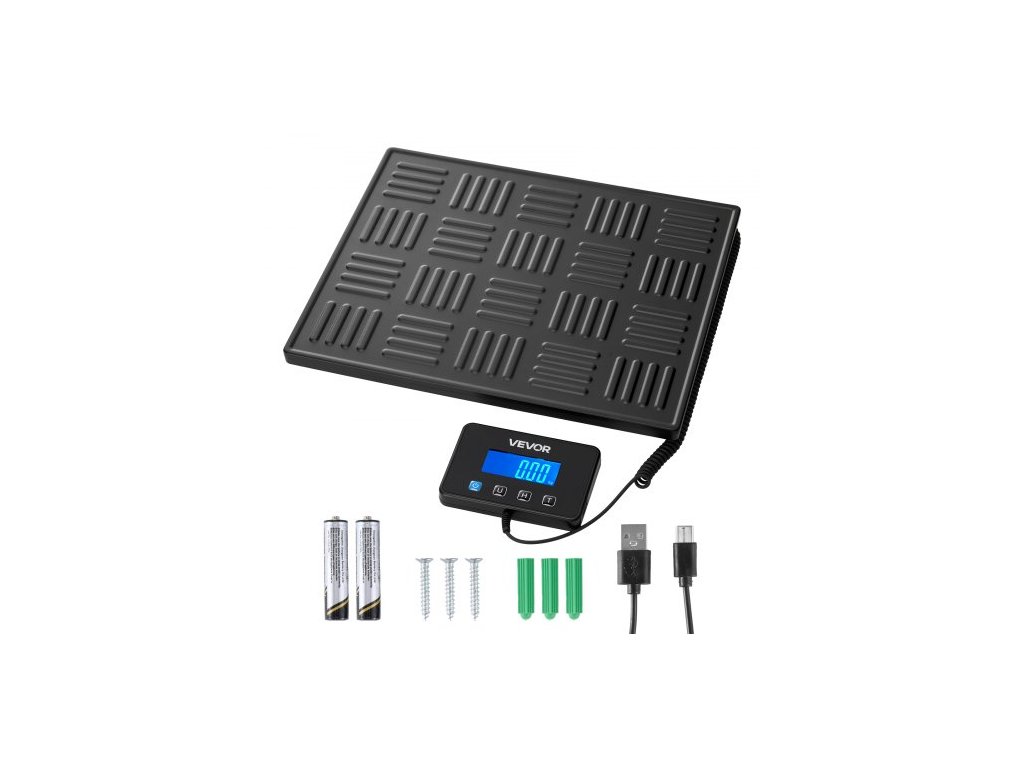 Digitální poštovní váha VEVOR, 20 g/100 g, dvojitá přesnost, komerční váha 300 kg s funkcí Hold/Tara a LCD displejem, vhodná pro balíky, poštovné, zavazadla, baterie a nabíjecí kabel součástí baleníVelká a protiskluzová PVC platforma