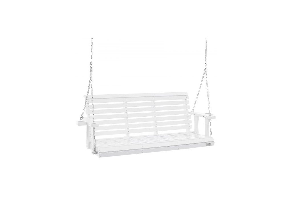 Dřevěná houpačka VEVOR na verandu 1,6 m, zahradní houpačka na terasu do dvora a do zahrady, vylepšená nosnost 380 kg, odolná houpací lavice se závěsnými řetězy pro venkovní použití, bílá