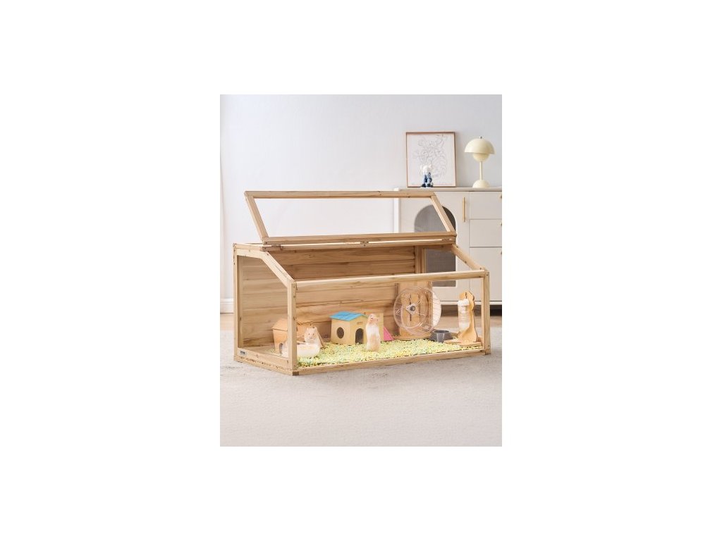 Dřevěná klec pro křečka VEVOR, úhel pohledu 270°, klece pro křečky, 48 x 20 x 20 palců, klece pro zakrslé křečky s otevíratelnou střechou, větraná klec pro malá zvířata, klec pro domácí myši, pískomily, krysy, morčata a myši.Zvedací otevírání