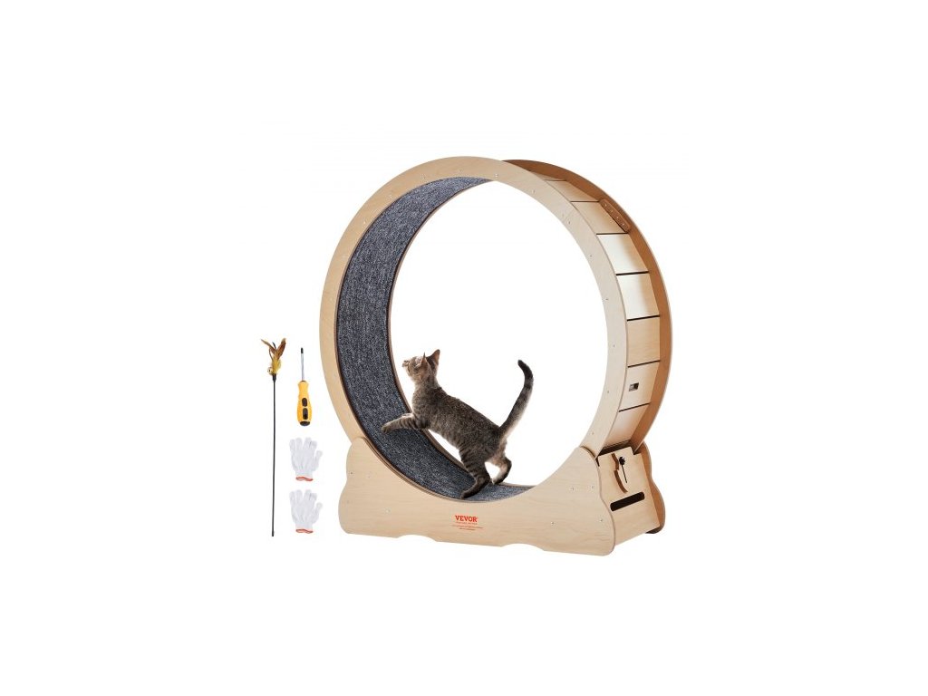 Dřevěné cvičební kolo pro kočky VEVOR, velké běžecké kolo pro kočky o průměru 43,3" pro vnitřní kočky, běžecké kolo pro kočky s odnímatelným kobercem a hádankou pro kočky na běhání/chůzi/trénink, vhodné pro většinu koček, žluté