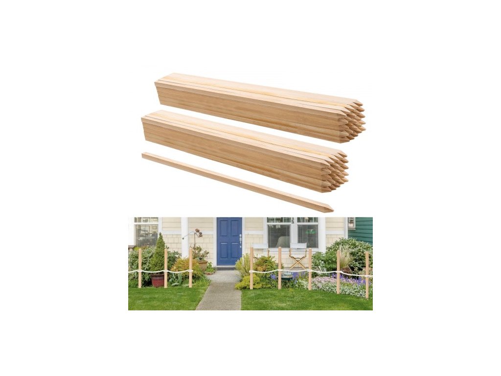 Dřevěné zahradní kolíky VEVOR, 50 ks 19,05 × 19,05 × 914,4 mm, kolíky pro vytyčování terénu, zahradní zemní kolík s ostrým hrotem, podpěrný kolík z jedlového dřeva pro rostliny, sloupky pro značení pro plot z bahna, hranice dvorku, základní linieStylový a praktický zahradní plot