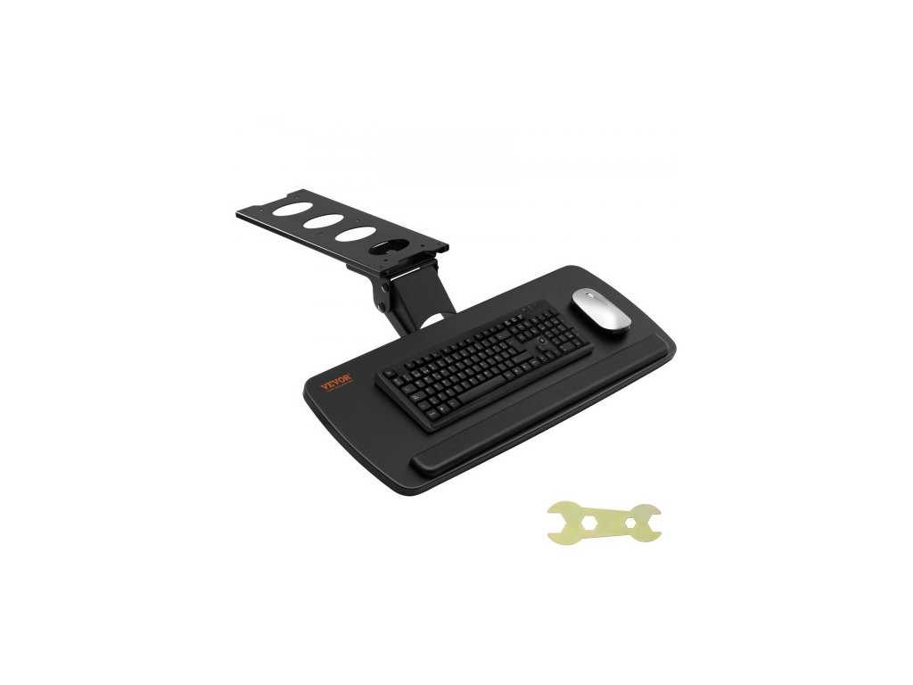 Držák klávesnice VEVOR pod stůl s nastavitelnou výškou, výškově a úhlem, výsuvný, velký držák klávesnice pod stůl o rozměrech 25x9,8 palce pro psaní doma i v kanceláři