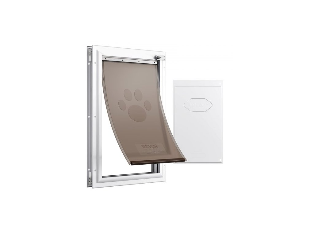 Dvířka pro domácí mazlíčky VEVOR, hliníkový rám 28,3 cm x 41,8 cm se systémem zámku a klapek, vodotěsná dvířka pro psy, snadná instalace do vnitřních i vnějších dveří, dvířka vhodná pro kočky, psy a koťátka (bílá - M)Komplexní ochrana