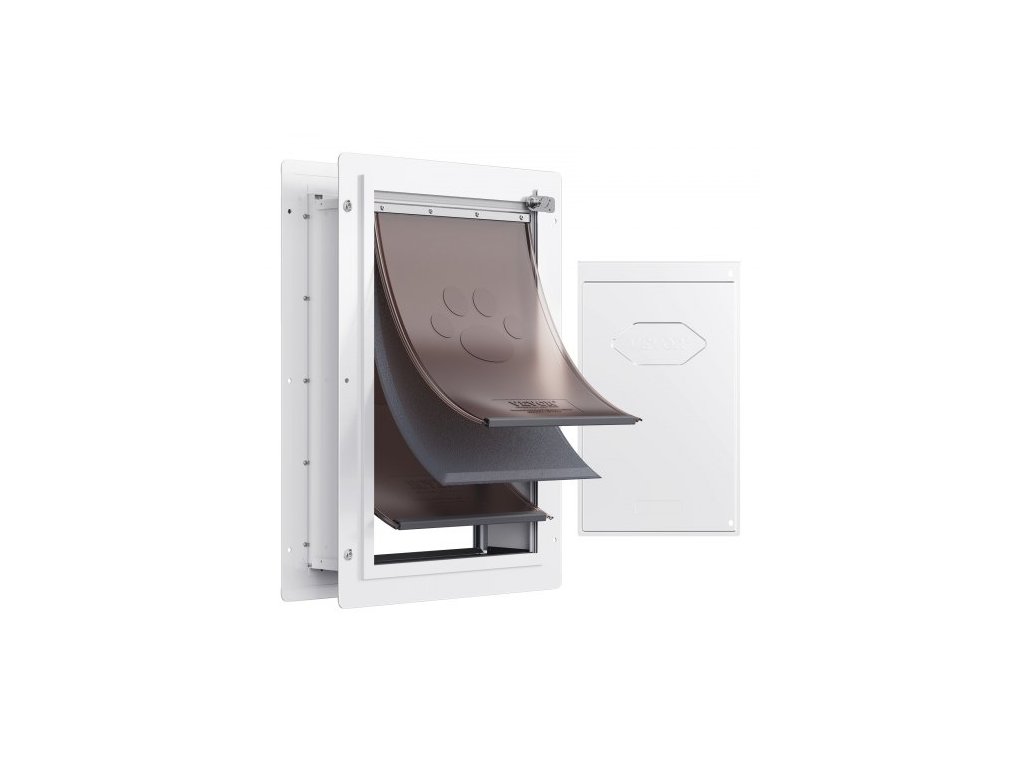 Dvířka pro domácí mazlíčky VEVOR, kovový rám 14,25" x 21,1" se zámkem a 3klapkovým systémem, odolná proti povětrnostním vlivům, snadná instalace do vnitřních i vnějších stěn, dvířka vhodná pro kočky, psy a koťátka (bílá - velká)Komplexní ochrana