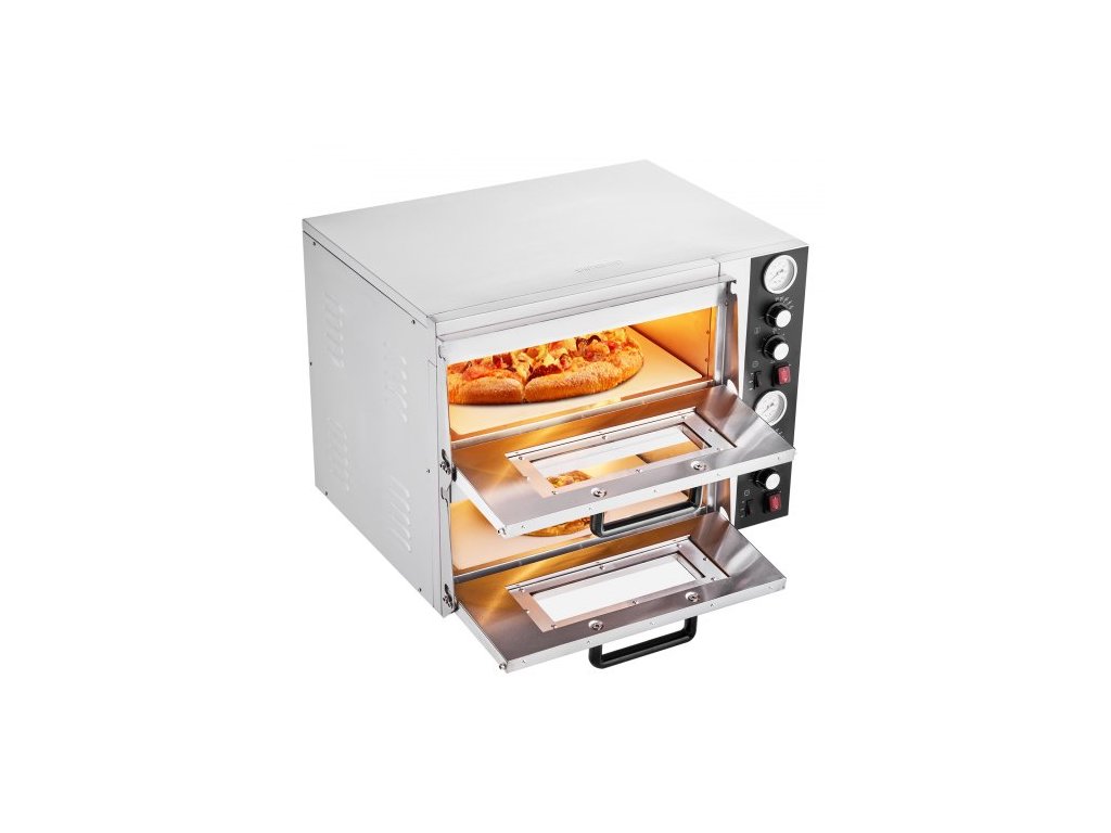 Elektrická pec na pizzu VEVOR, 18" dvoupatrová komerční stolní pec na pizzu, maximální teplota 842 °F, vnitřní pec na pizzu s teploměrem, nezávislá regulace horní a dolní teploty a časovač pro domácí restauraci