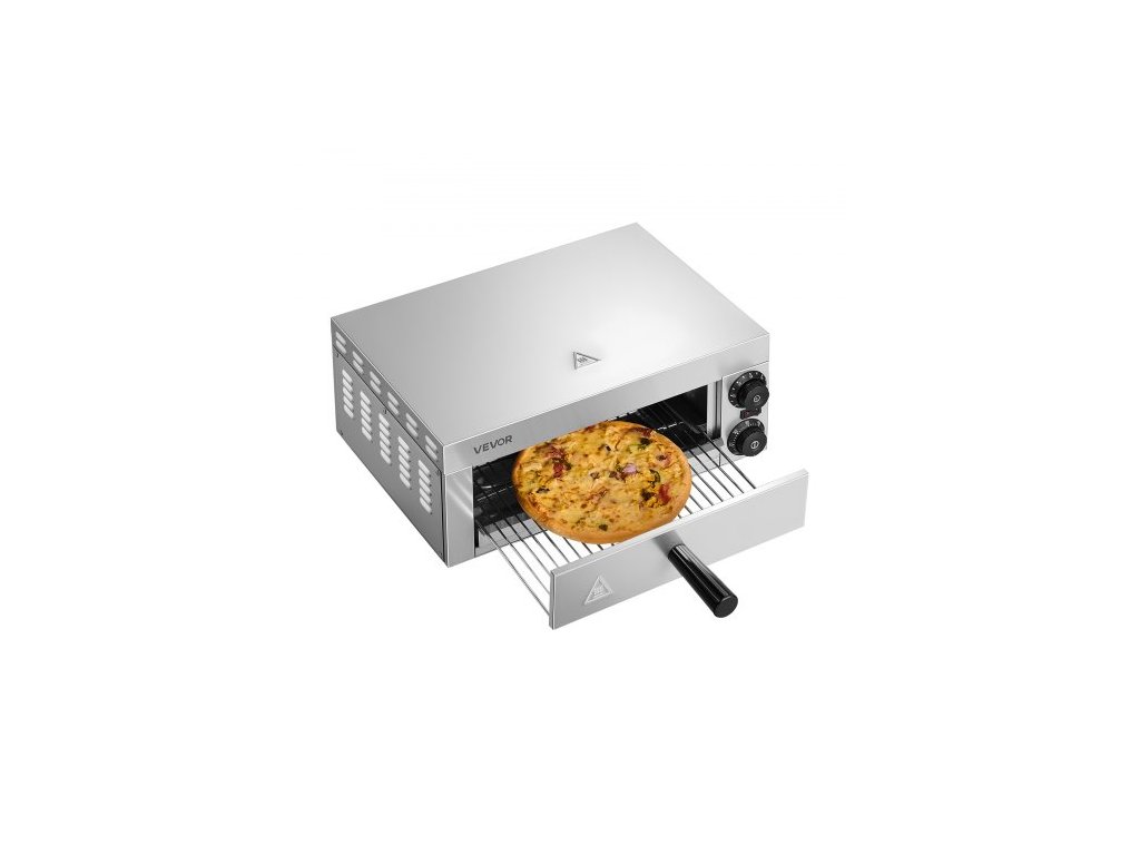 Elektrická pec na pizzu VEVOR na kuchyňskou linku, 12 palců, 1500 W, s regulací teploty a časovačem 0–60 minut, technologií rovnoměrného pečení a snadno čistitelným plechem na drobky, ideální pro komerční i domácí kuchyněVysoce kvalitní elektrická pec na pizzu