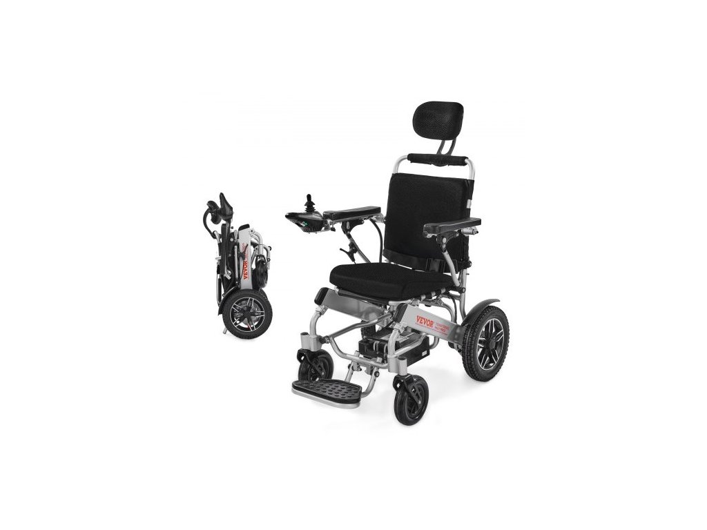 Elektrický invalidní vozík VEVOR pro dospělé, nosnost 136 kg s nastavitelným opěradlem, skládací a lehký motorizovaný invalidní vozík, dojezd 21 km, terénní elektrický vozík, přenosný pro seniory a osoby se zdravotním postiženímOvládání multifunkčním joystickem