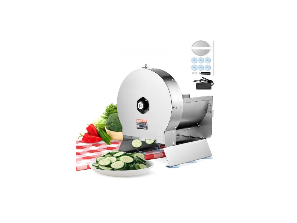 Elektrický kráječ zeleniny VEVOR, nastavitelný kráječ o tloušťce 0-0,5"/0-12 mm, nastavitelný na ruční krájení, nerezový kráječ potravin, na brambory, citrony, rajčata a jablkaDosáhněte rovnoměrné tloušťky řezů