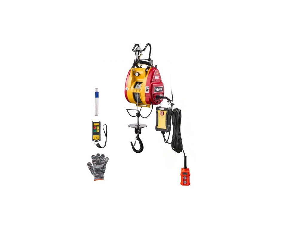 Elektrický naviják VEVOR 2 v 1, nosnost 300 kg, přenosný naviják 1500 W, výška zdvihu 30 m, rychlost 18,9 m/min s kabelovým a bezdrátovým dálkovým ovládáním pro továrnu, sklad, garáž
