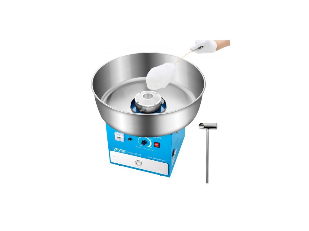 Elektrický stroj na cukrovou vatu VEVOR, 1000W profesionální výrobník cukrové vaty s miskou z nerezové oceli o průměru 52 cm, odměrkou na cukr a zásuvkou, snadné domácí použití, ideální pro dětské narozeniny, rodinné oslavy, modrýVětší cukřenka