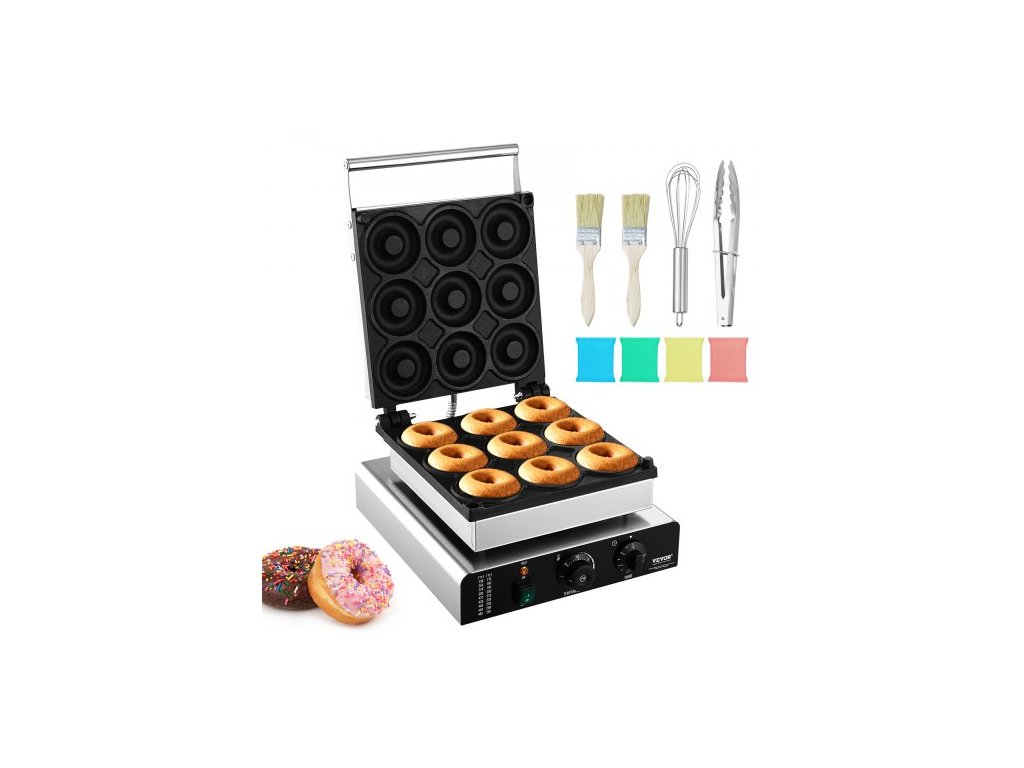 Elektrický výrobník koblih VEVOR, 2000W profesionální výrobník koblih s nepřilnavým povrchem, 9 otvorů, oboustranný ohřev, výrobník vaflí, teplota 50-300℃, pro restaurace a domácí použitíVysoce kvalitní materiály
