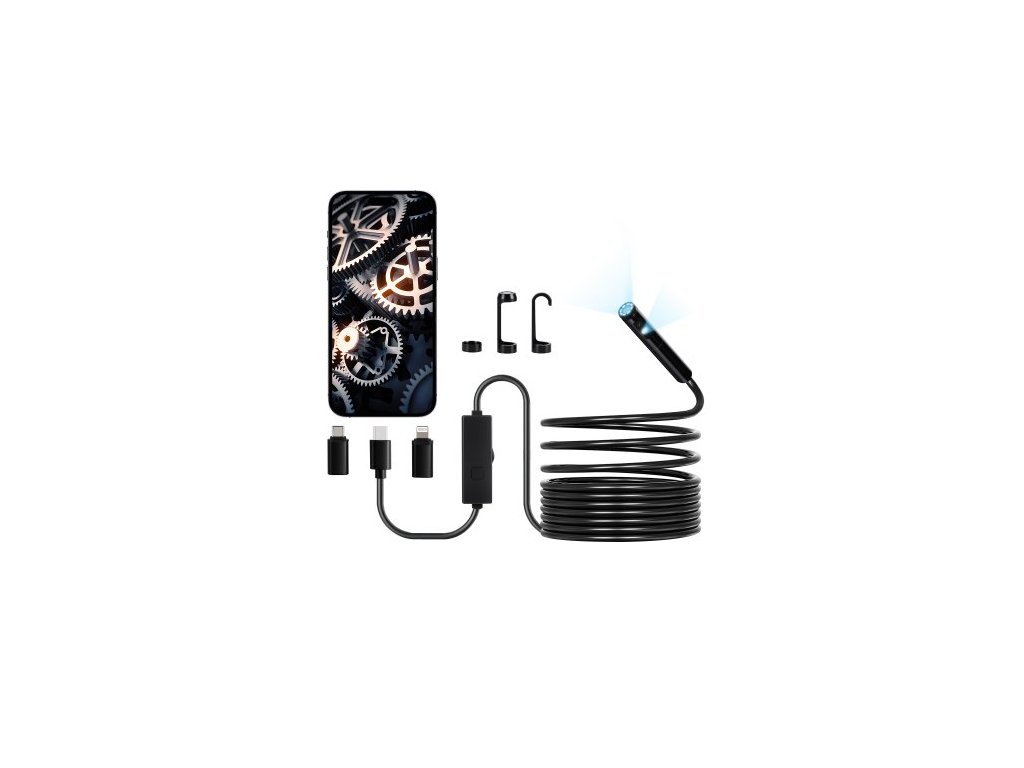 Endoskopická kamera VEVOR se světlem, boroskop s dvojitým objektivem pro Android a iOS, inspekční kamera 1920P HD s 8 + 1 LED světlem, 2x zoom, 5m hadí kabel, vodotěsná kamera IP67 s hadí kamerou pro auto a instalatérství
