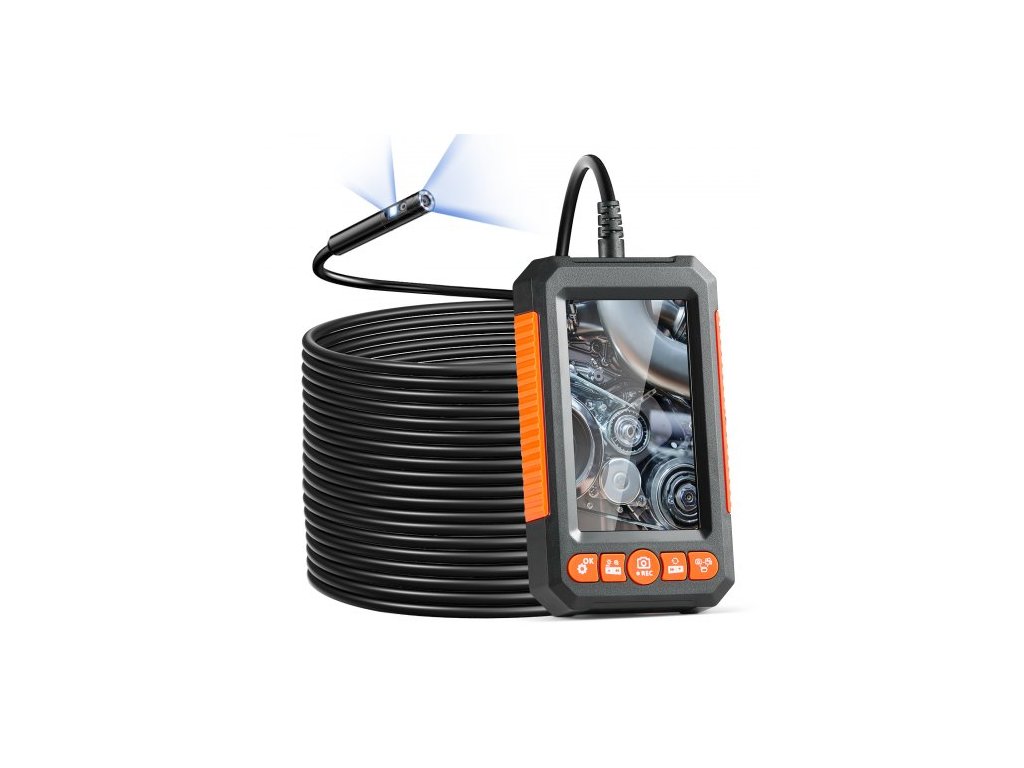 Endoskopická kamera VEVOR se světly Dual Lens Borescope 49,2FT kabel 4,3" obrazovkaNastavitelná světla