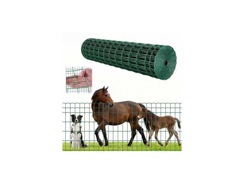 Farmářský plot VEVOR, 1,2 x 25 m, oka 2 x 4 palce, pozinkovaný ocelový drát o síle 2,1 mm pro skot, prasata a ovce, odolný plot s vinylovým povlakem pro ohrady pro zvířata, drát do klece, zahradní ploty, zelený